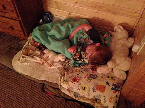 Henry's "nest" in Grandpa and Grandma's room. It's 10:30 p.m. here and he's passed out.